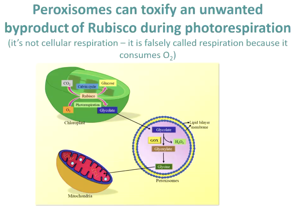 Organelles that deal with degradation processes in cells, especially in metabolic pathways. (deal with glycolate)