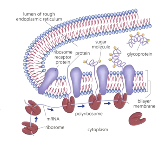 Sugar residues may be attached to proteins in the ER; these modified proteins are known as glycoproteins.