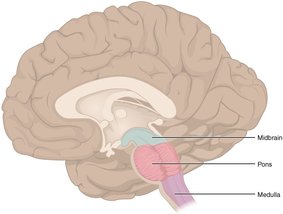 Neural control of respiration begins in the brainstem at the medulla oblongata and the pons. There are 2 paired groups of neurons in the medulla oblongata that work to control the rate and rhythm of breathing. Groups of neurons in the pons help to fine tune breathing and act as a backup system in case there is damage to the medulla oblongata.