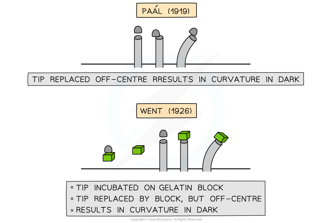 Confirmed that stimulus for growth was a chemical (hormone) and showed that is was produced at the tip, before travelling down the coleoptile on the side opposite to the stimulus