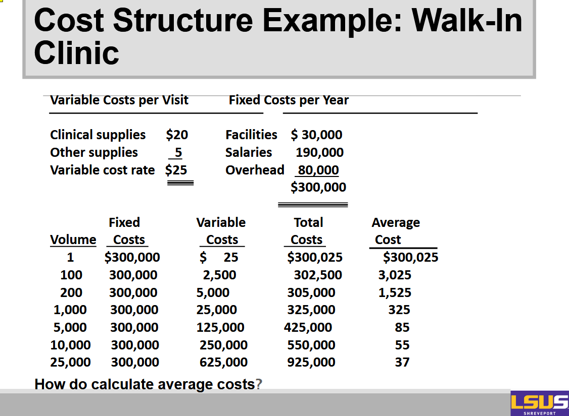 Examples of fixed and variable costs, say, for a hospital’s clinical laboratory:
