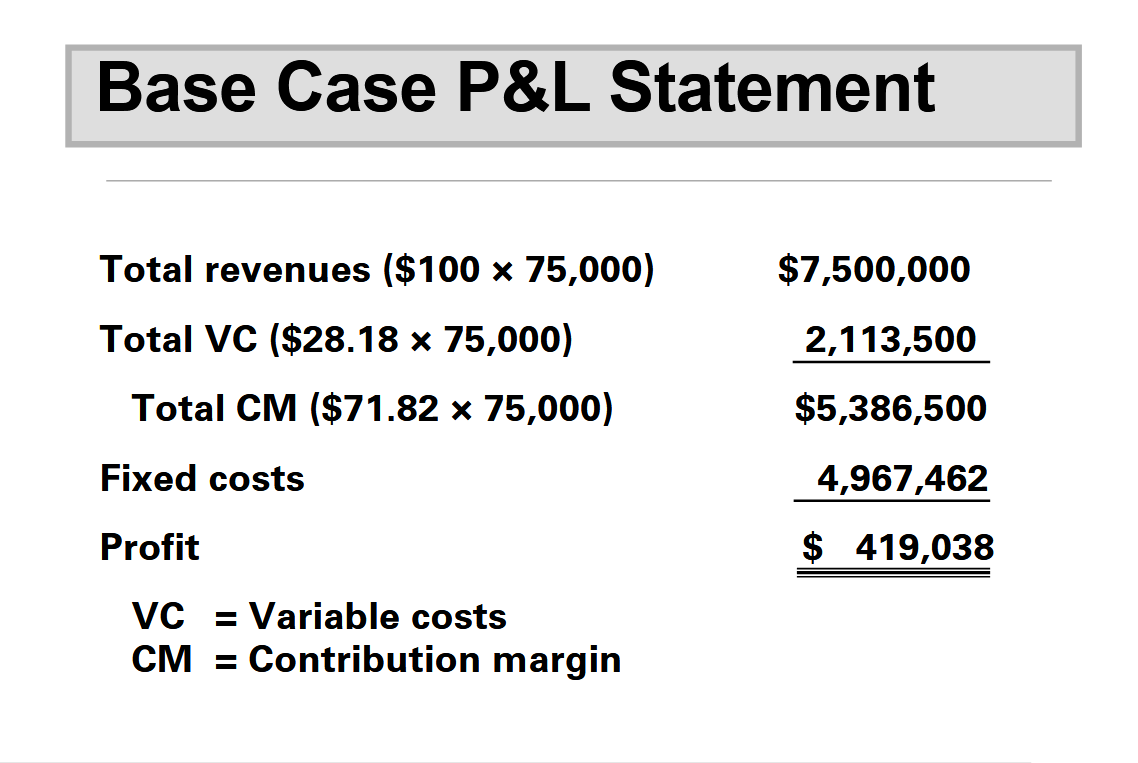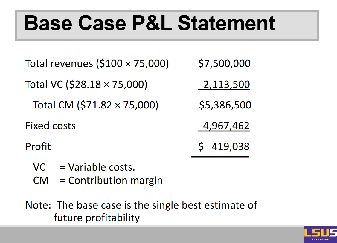P&L statement - Uses cost structure information, revenue forecast, and projected volume to forecast profitability.