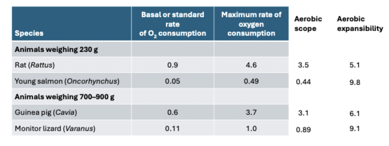 it was found that mammals have a higher vo2 max then ectoterms (so lizards fish…)