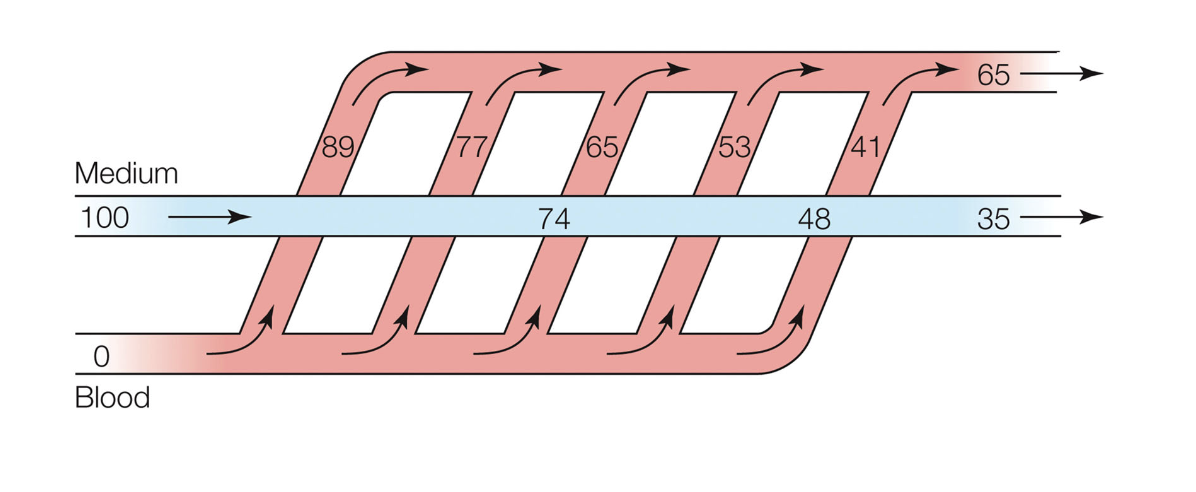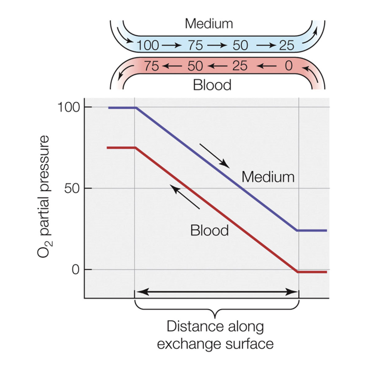 this maintains the gradient and is the most efficient way to exchange oxygen