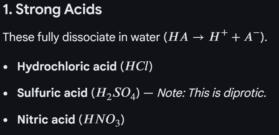 CAREFUL: when 1 mol/ dm cubed of H+ ions, this means 1 mol of HCl OR 0.5 H2SO4 (careful if dichrotic acid, dissociating 2 H+ for every sulfuric acid molecule)