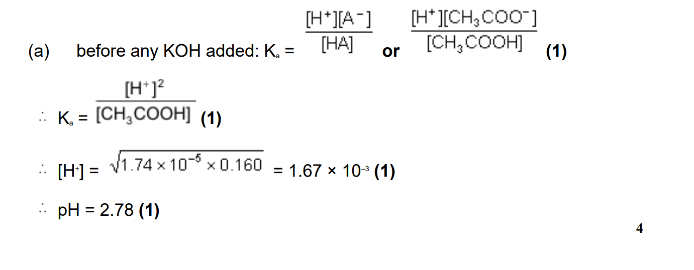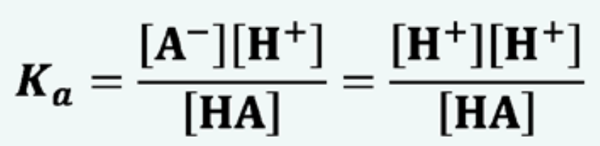 This is because, we assume the concentration of [HA] remains roughly the same as only partial dissociation of the acid. Also assume the concentration of A = H, because they HA dissociates in a ratio of one, with each H there is a A molecule.