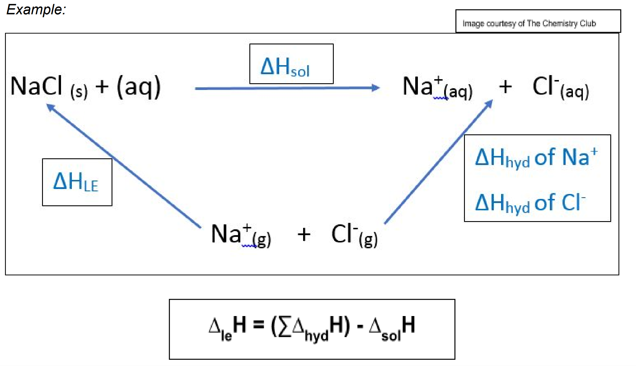 Lattice enthalpy of formation (depends on charge of ion + the size of ion (stonger if both are smaller - for this don’t include covalent characteristic)): The standard enthalpy change when one mole of solid ionic compound is formed from its gaseous ions