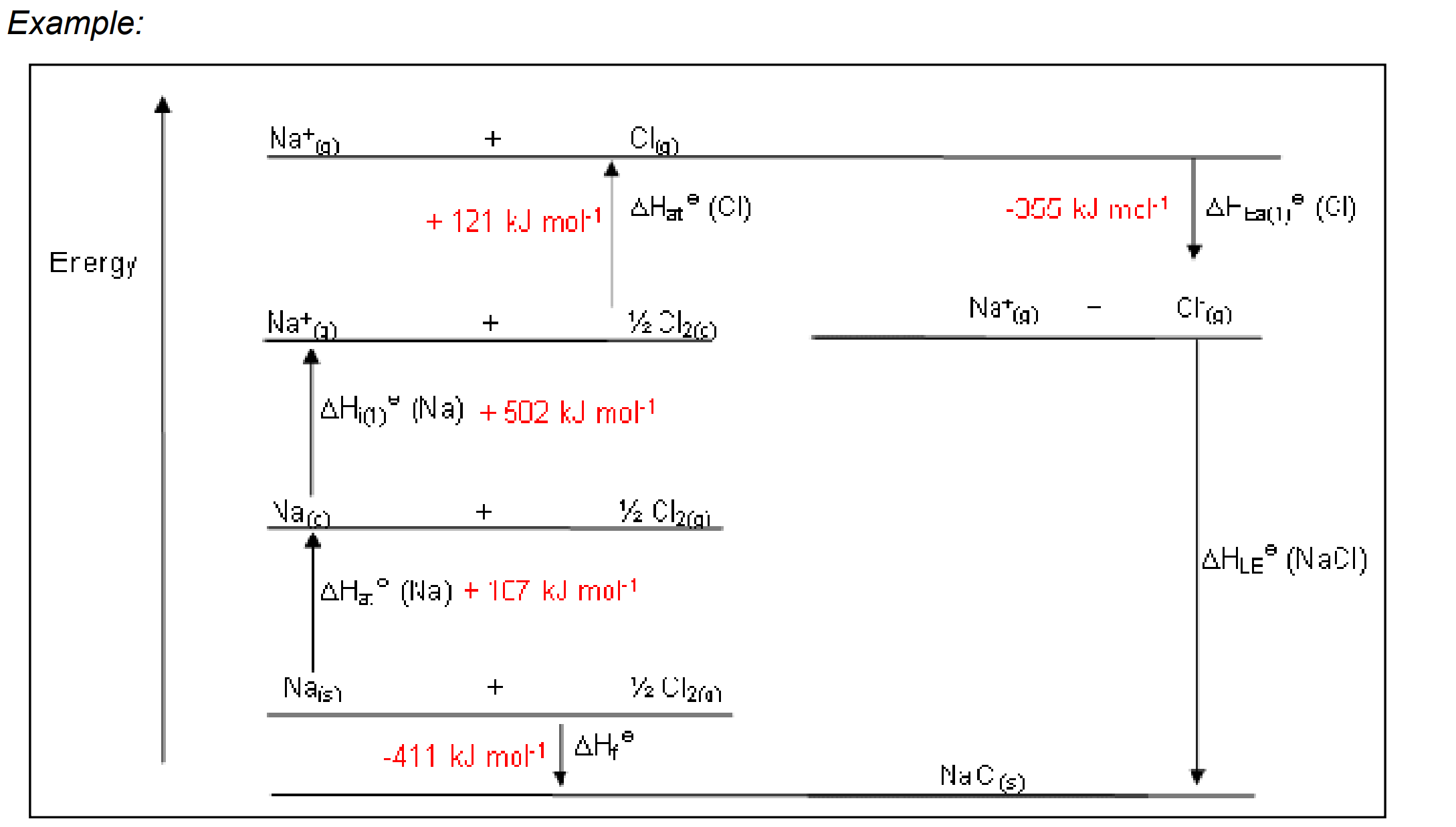 Born Haber cycle: A thermochemical cycle that includes all the enthalpy changes involved of the reaction.