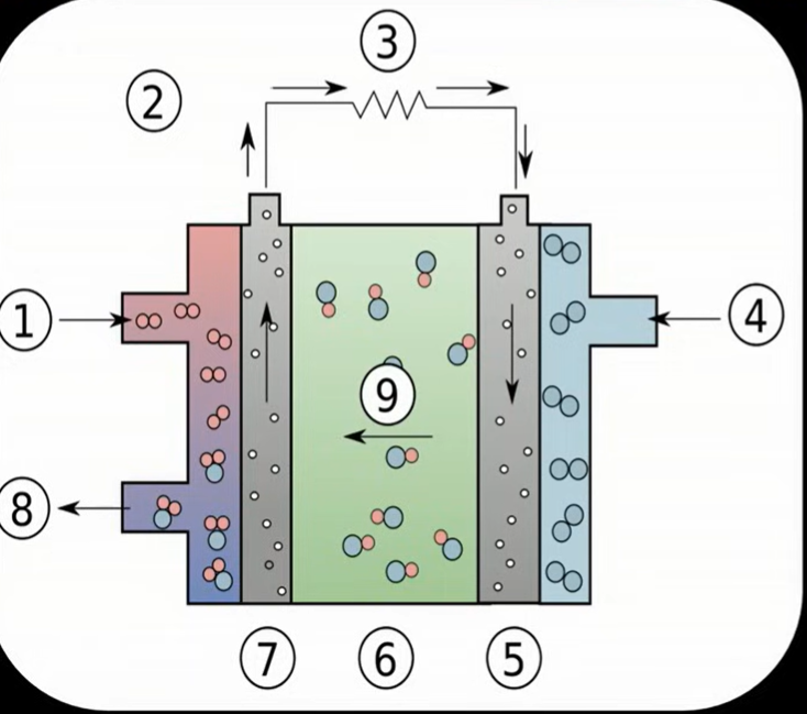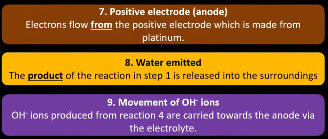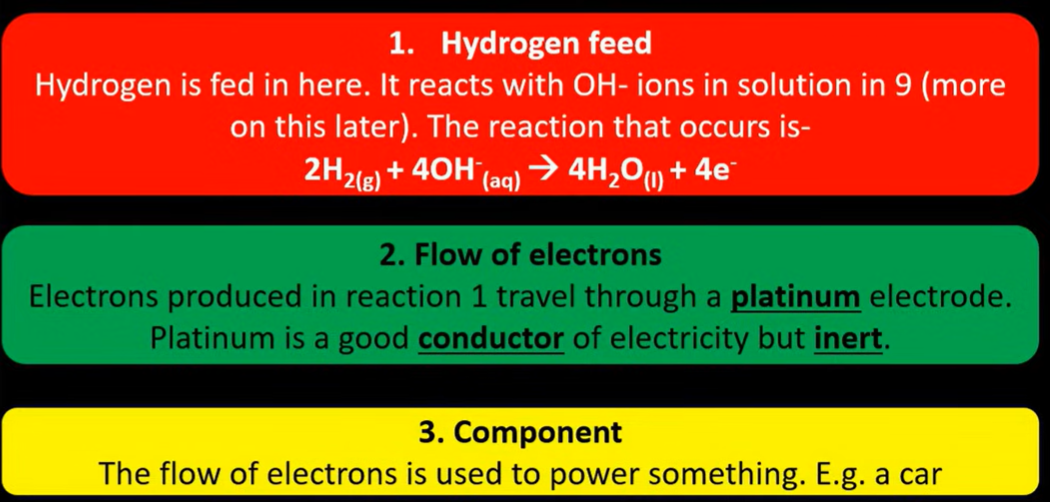 Hydrogen gas is oxidised into hydrogen ions at negative electrode (platinum)