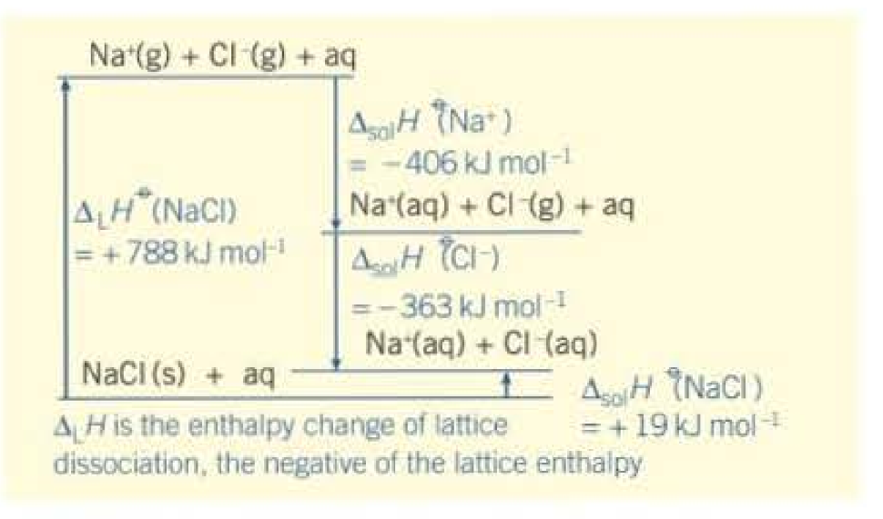 Lattice enthalpy of dissociation: The standard enthalpy change when one mole of solid ionic compound dissociated into its gaseous ions