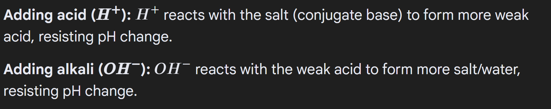 Buffers: Resist changes in pH, when small amounts of acid or alkaline are added