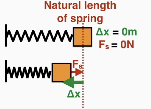 Fs= Force applied by spring on object. Always points towards spring's natural length position.
