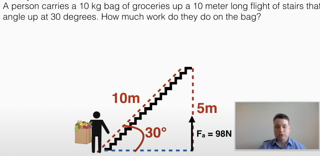 Work (W) is an objects displacement multiplied by the component of force parallel to the displacement (J), scalar