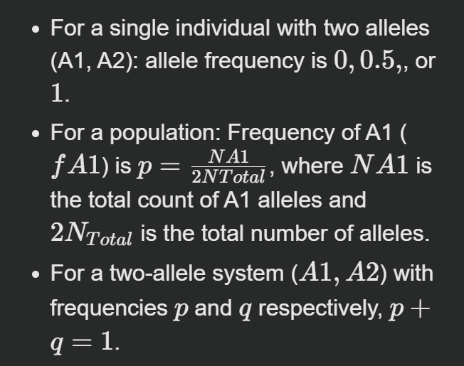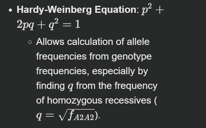 Hardy-Weinberg Equilibrium (HWE): A population in which allele frequencies do not change (i.e., not evolving).