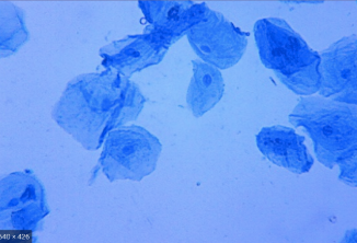 slide is then pushed across the surface of the lower side to create a thin smear spreading out sample in a thin layer