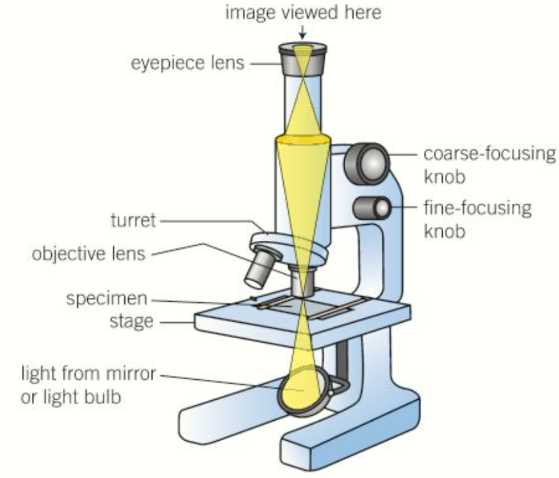 specimen to be viewed is placed on a slide and a drop of liquid added