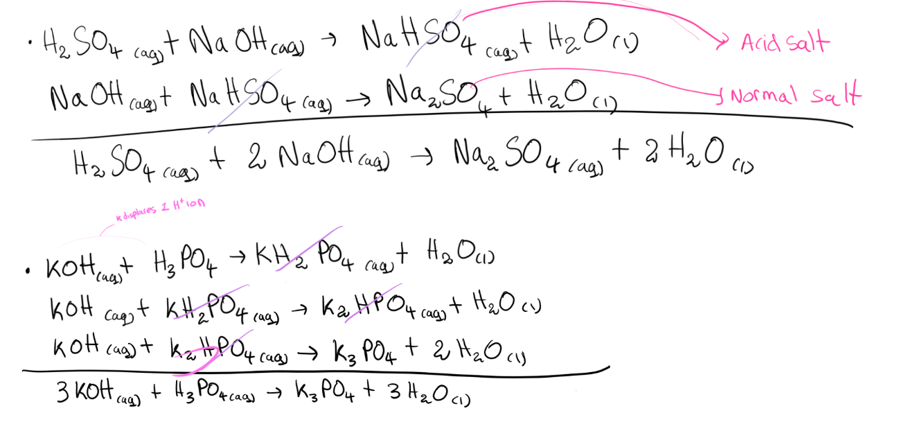 * Normal salts are formed when all of the H+ ions in an acid are replaced by metal or ammonium ions.