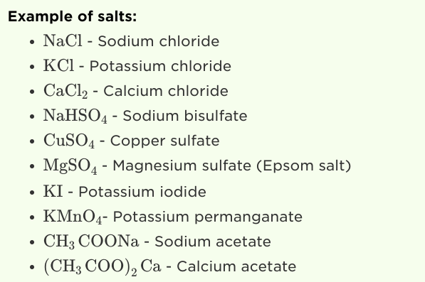 * A salt is a compound formed when some or all of the hydrogen ions in an acid are replaced by metal ammonium ions.