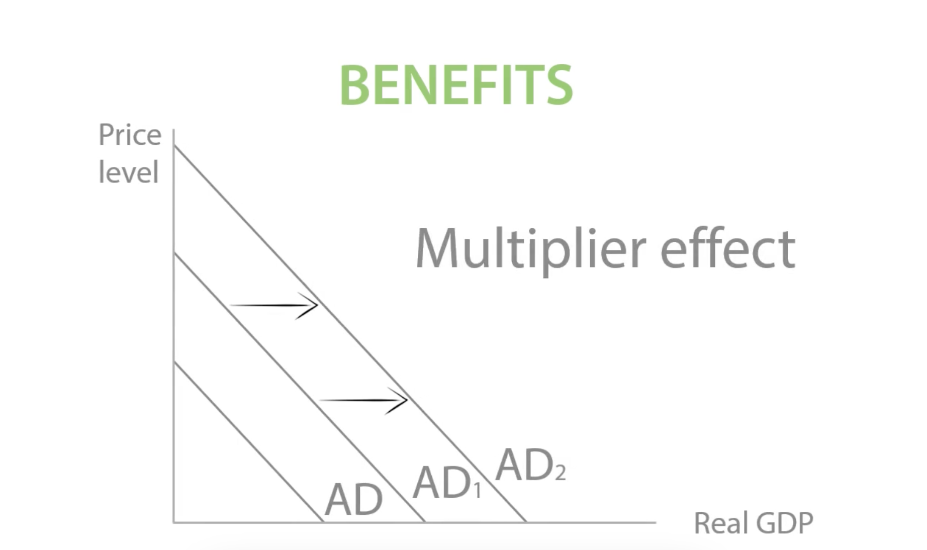 Like income, increased benefits shift AD to the right, expanding the economy and can also expand more times via the multiplier effect.