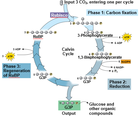 Carbon Fixation, Reduction, Regeneration of CO2 Acceptor - Three Phases of the Calvin Cycle