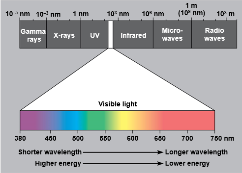 Visible Light - Consists of wavelengths (380nm to 750nm) that produce the colors we see.