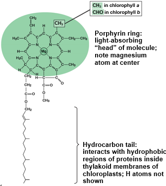 Slight Structural Difference Between Pigment Molecules - The difference in the absorption spectrum between chlorophyll a and b is due to a?