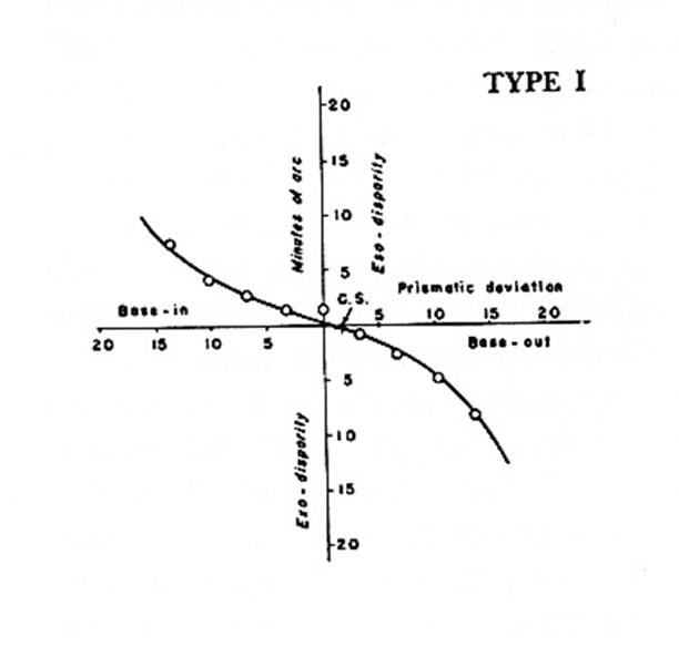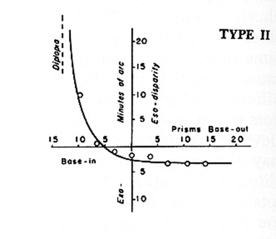 Visual representation: x-axis = vergence (Δ); y-axis = accommodative stimulus (D).