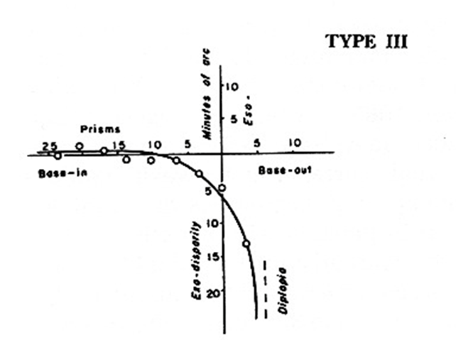 As BI is added, patient must diverge to maintain bifoveal fixation and maintain accommodation at a given level (D or N)