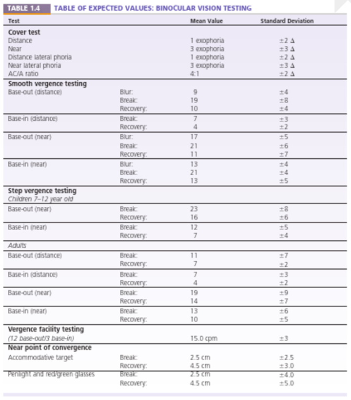 Amplitude of vergence (calculated using near point of convergence (NPC) and PD)