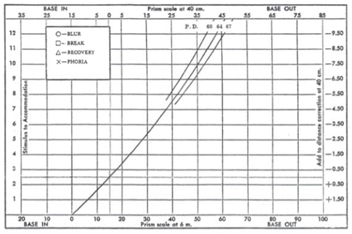 Purpose: Plot clinical accommodation and vergence findings to determine whether the patient has clear, single, comfortable binocular vision.