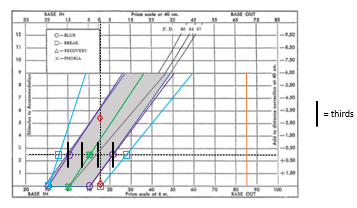 near working distance - plot point at 40cm working distance line (horizontal dotted line).