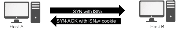 * At this point, the server doesn't have to allocate any memory to keep track of the connectionIf the SYN is from a legitimate client, the host returns an ACK and the final part of the three-way handshake is completed