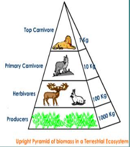 Takes into account the mass of each organism in a food chain (not just the number of organisms as in a pyramid of numbers)