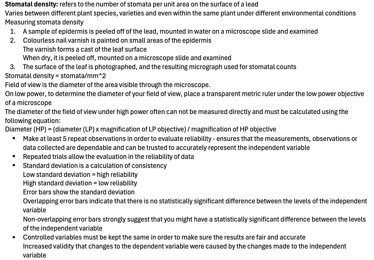 Stomatal density = stomata/mm^2