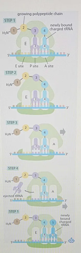 Anticodon: A set of three nucleotides that are complementary to a specific mRNA codon. This ensures the correct amino acid is added to the growing polypeptide chain.