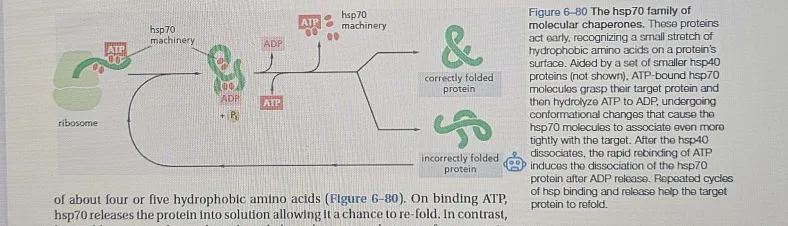 hsp70: Binds to and helps refold misfolded proteins, utilizing ATP.