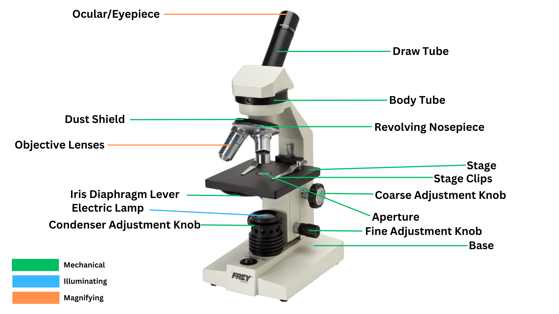 - Objective Lenses - metal cylinders attached below the nosepiece for magnification