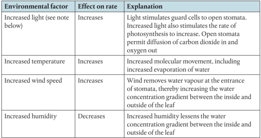 Stomata: microscopic openings in the lower leaf layer, allow CO2 to enter and oxygen + water vapour to exit the leaf
