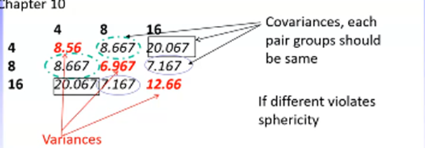 Sphericity regards whether the variances and covariances across pairs of RM groups are the same.