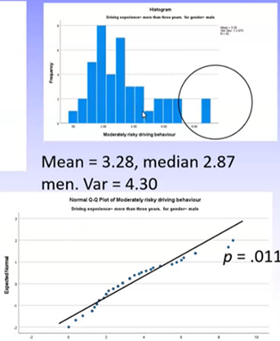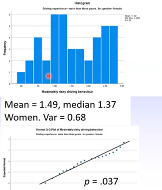 After applying this: distributions, normality, and Levene’s tests look a lot better. However, there has actually been no significant change in any of the analyses. Therefore, the violations of normality and homogeneity of variance has made no impact on the analysis – so the transformation should not be applied.