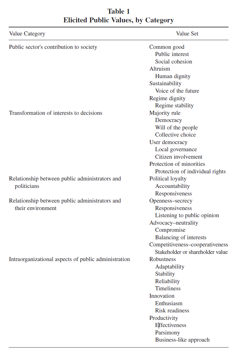 These values serve as a starting point for the understanding of public values but offer little clarity on their hierarchy
