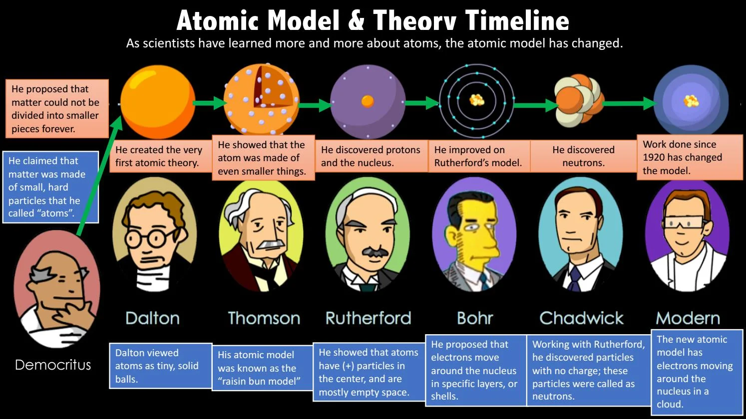 -1st scientist to have a theory about matter being composed of atoms & how atoms might look & behave