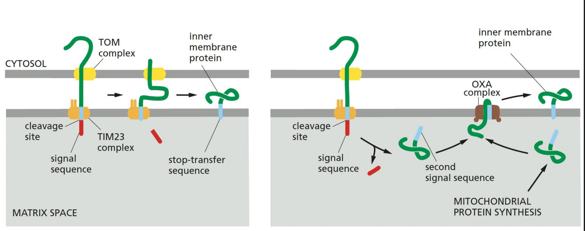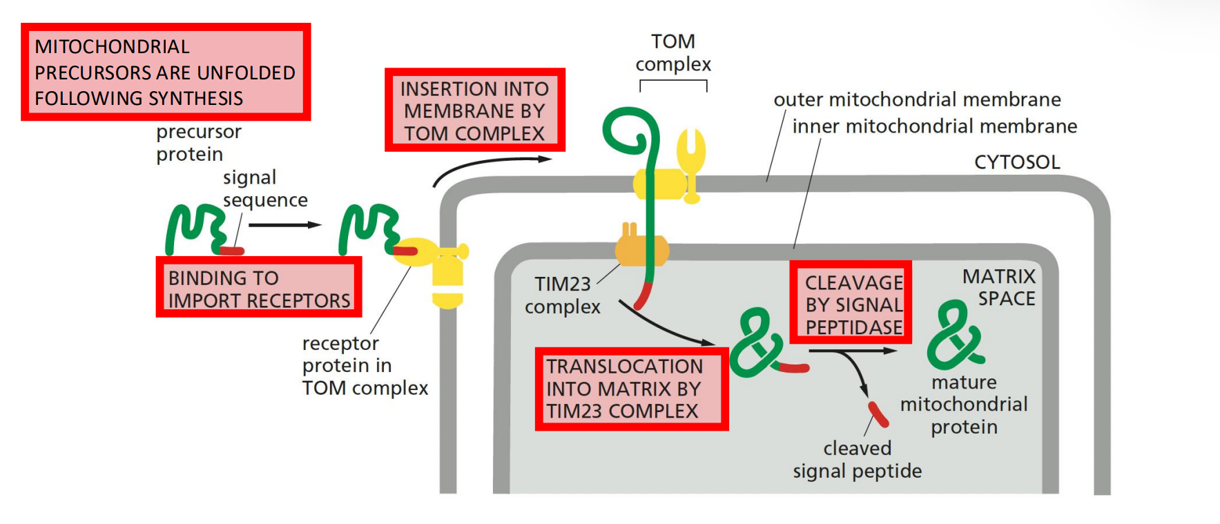 Matrix: TOM complex, TIM23 complex, N-terminal matrix-targeting signal