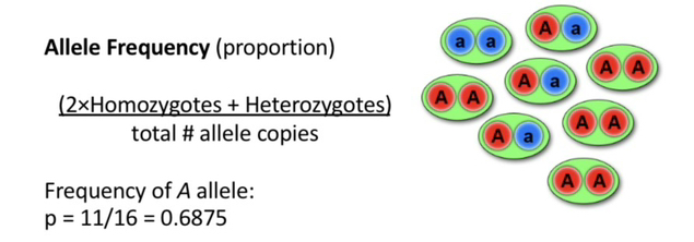 (2×Homozygotes + Heterozygotes)/ total # allele copies
