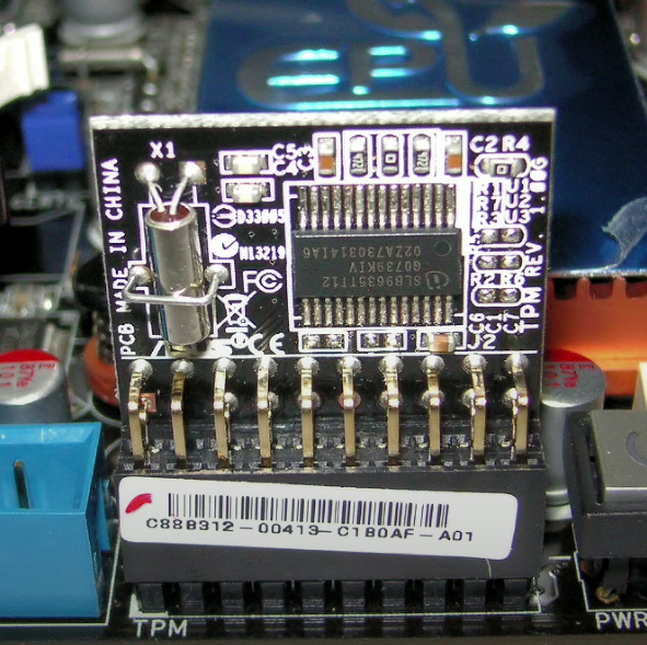 Trusted Platform Module (TPM): A hardware that performs cryptographic functions. Contains a cryptographic processor, persistent memory (unique keys burned in), FDE key storage, and password protection.
