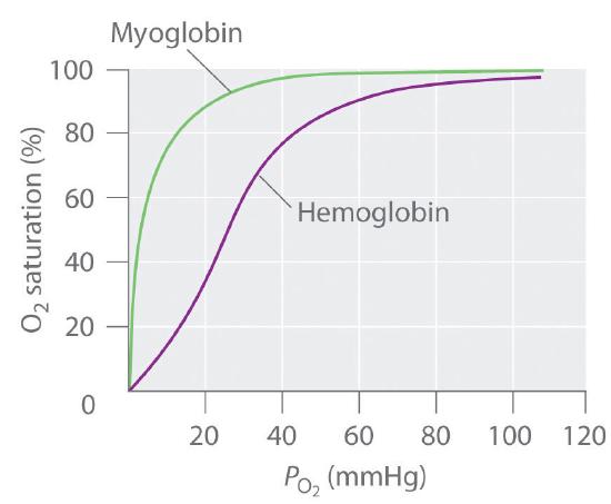 What is the function of myoglobin? - O2 “reserve” storage for muscles - holds onto O2, gives it up only when concentration drops very low