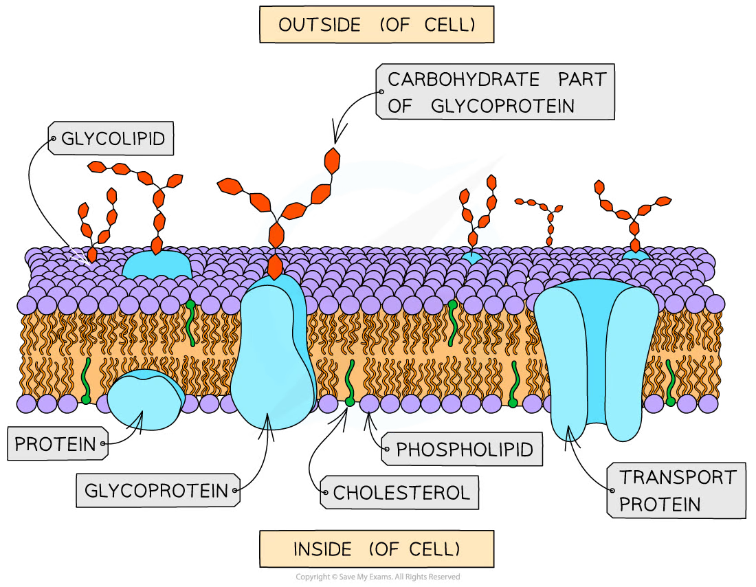 - Carbohydrate portion sticks out end of membrane and act as a %%receptor for specific chemicals%%