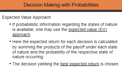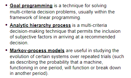 - Multicriteria decision problems - involve more than one criteria