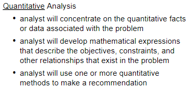POTENTIAL REASON FOR A QUANTITATIVE ANALYSIS APPROACH TO DECISION MAKING: