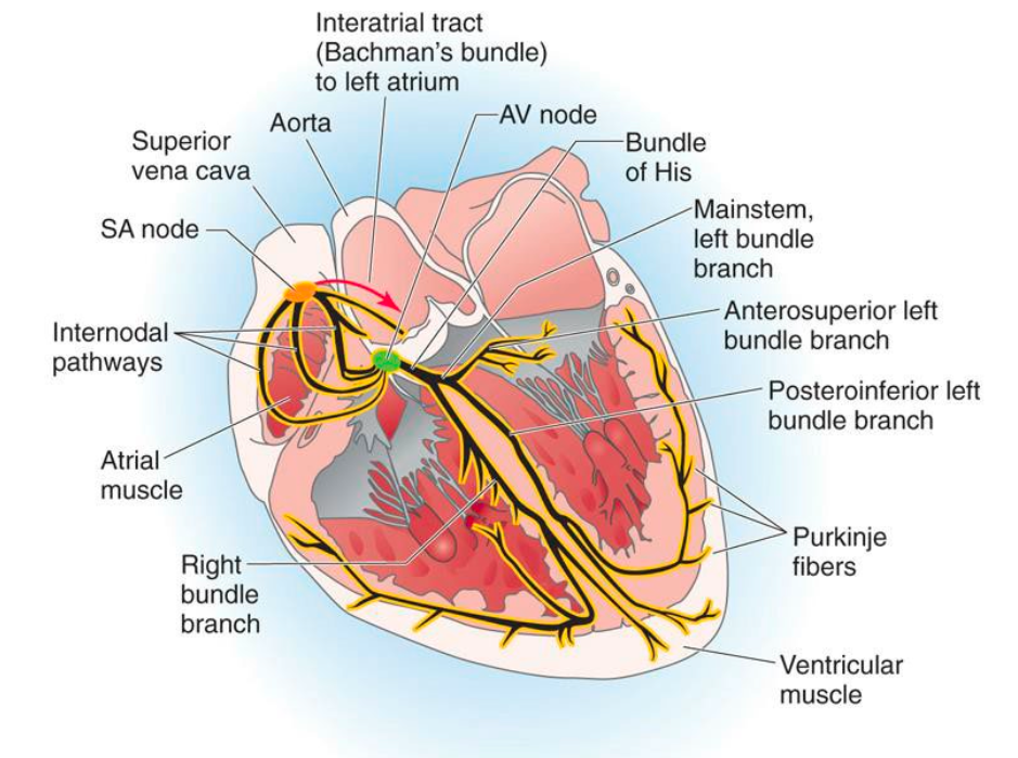 Sympathetic Nervous System: Increases heart rate and contractility through the release of norepinephrine, enhancing conduction through the AV node and around the heart.